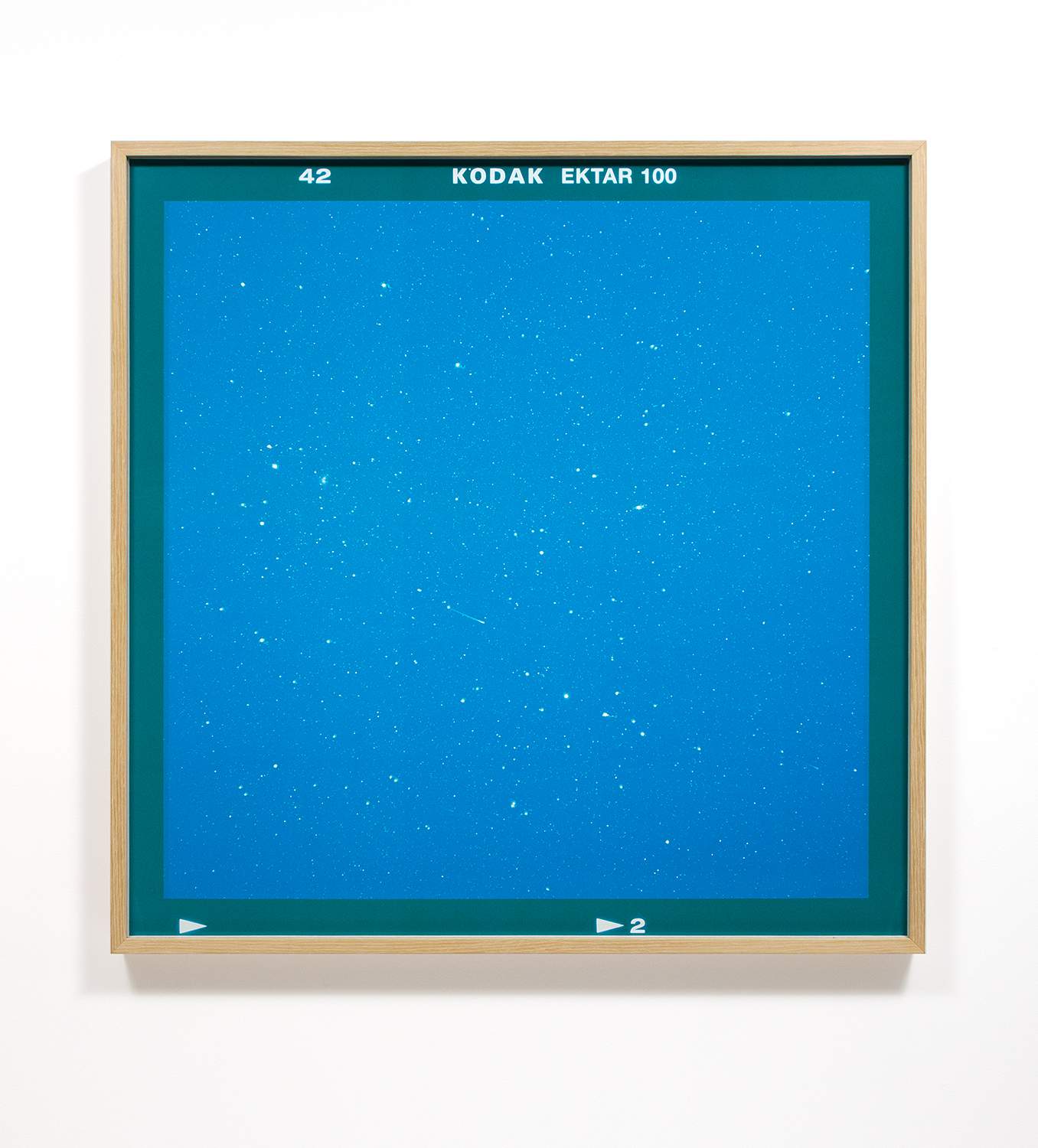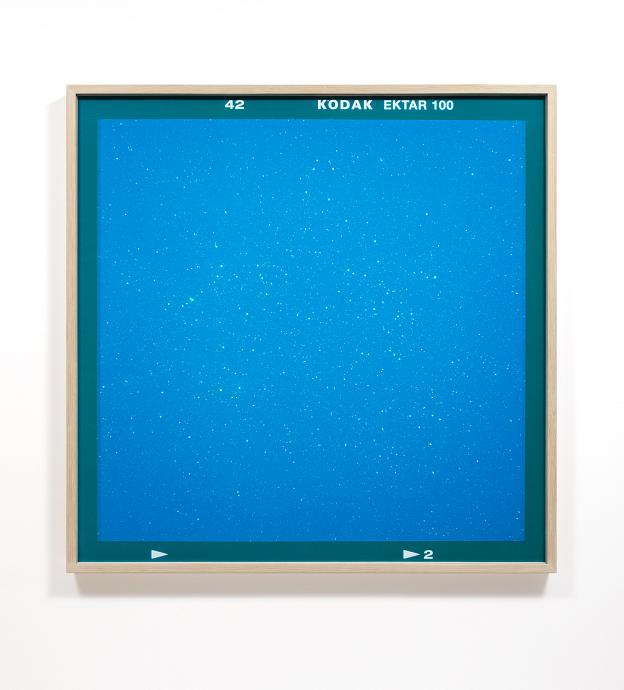 The works in the Via Lactea series are created by photographing very small sections of the night sky stars over the course of many hours on the same segment of Kodak Ektar film. This labour intensive process is typically carried out in remote locations under a new (no) moon to avoid any light pollution.