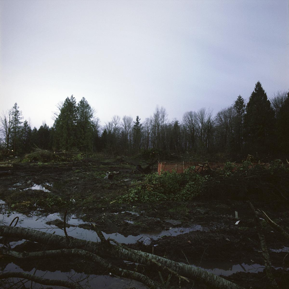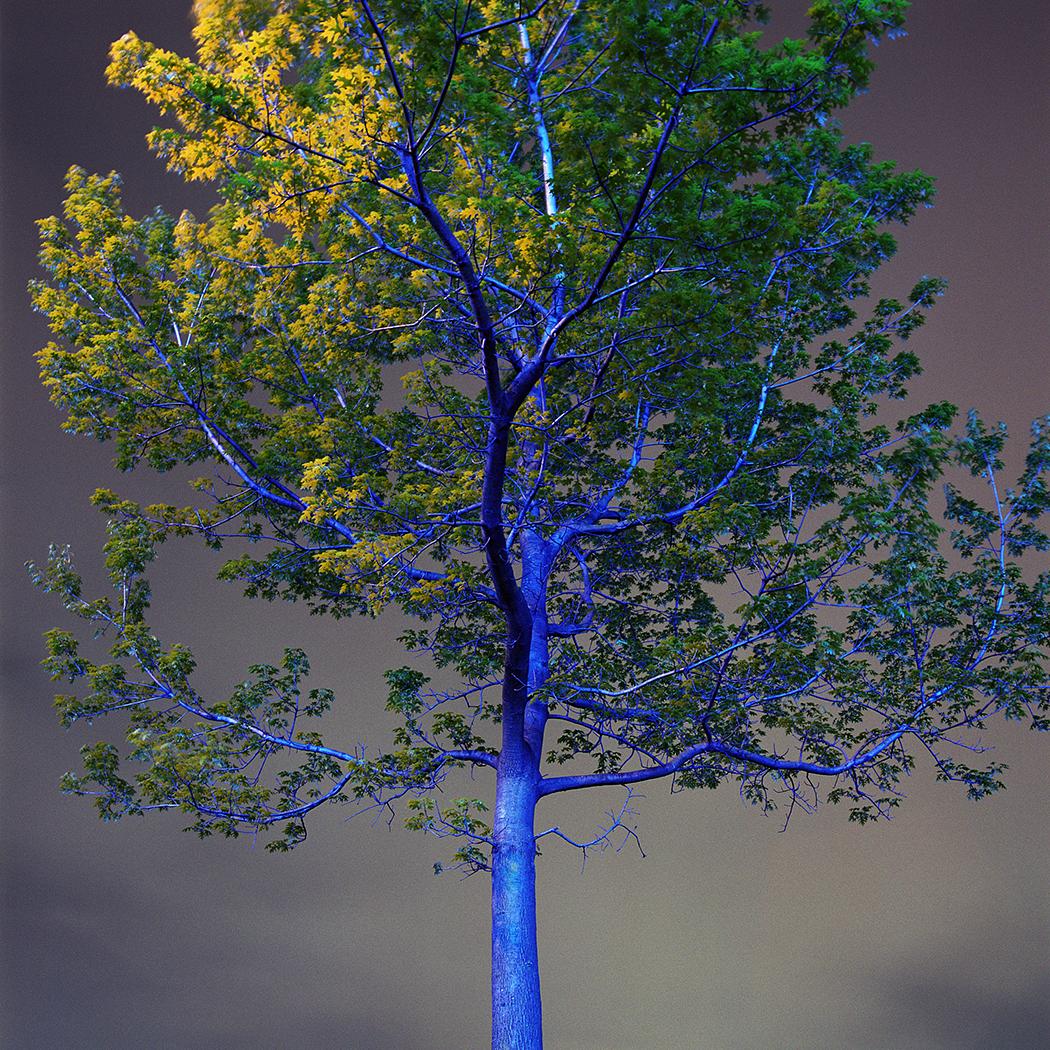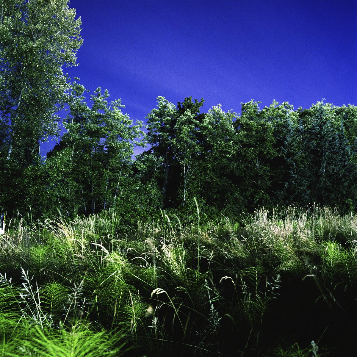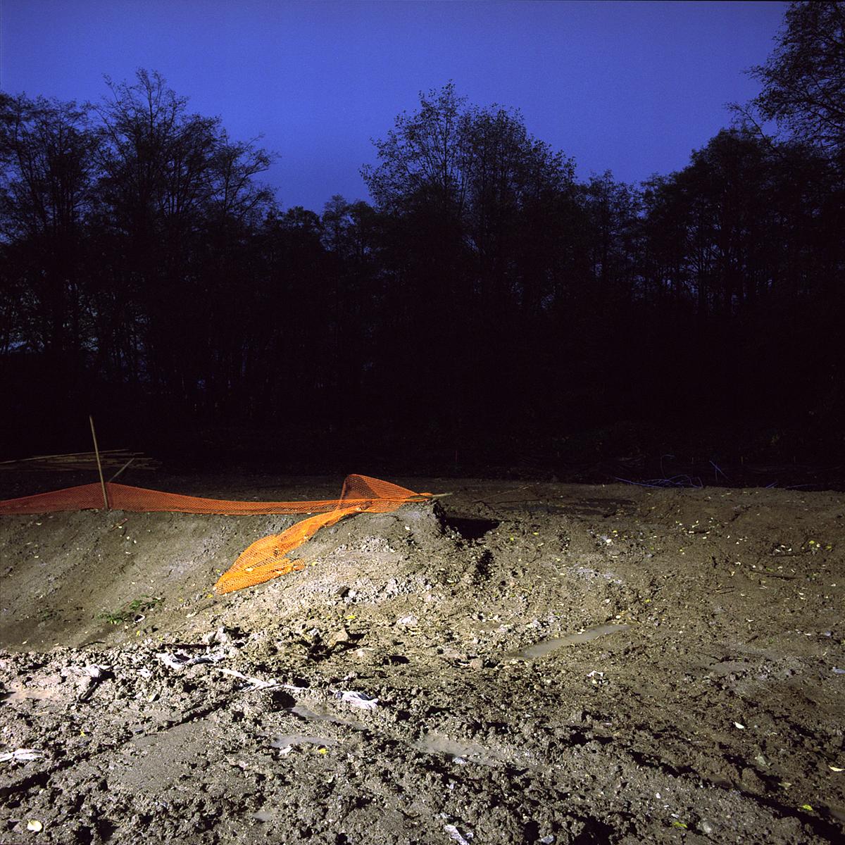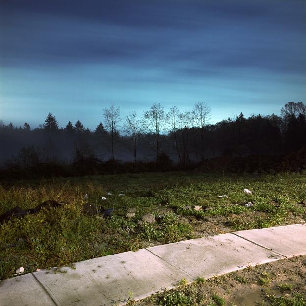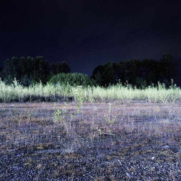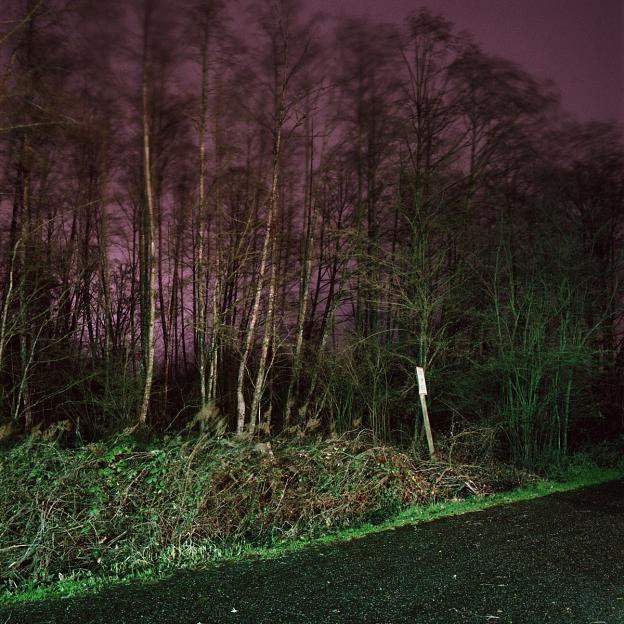 The crepuscule images have an “uncanny” presence to them, in the Freudian sense of the word as unsettlingly familiar. They are an attempt to see the strange world we create but fail to perceive because of its familiarity. The landscape beyond the wash of street lamps, buildings and car headlights has come to exist as a backdrop, registering in our minds only as “tree”, “thicket” or “field”. The relative darkness of these areas is left unexplored for its lack of interest. We are creating a world where darkness is becoming a misnomer, and twilight hangs over us like an uneasy blanket of sleep.