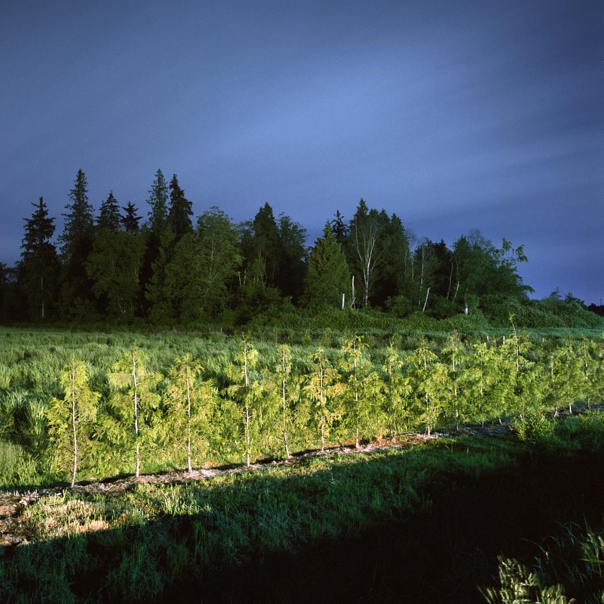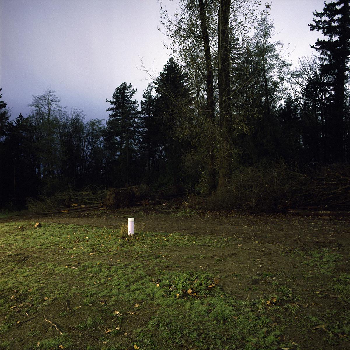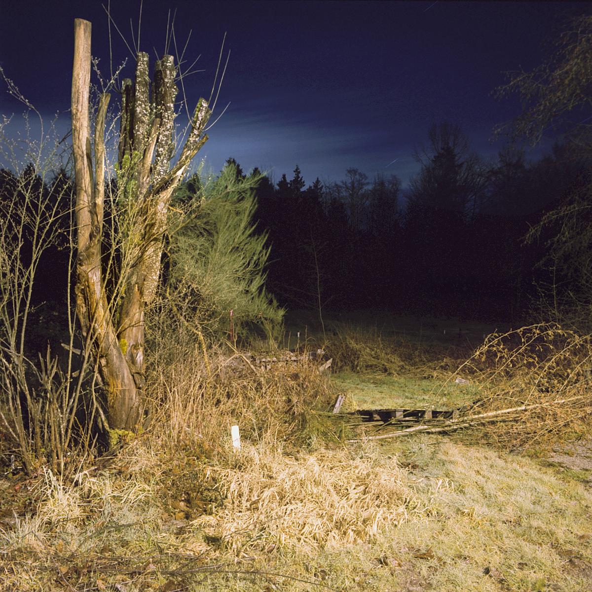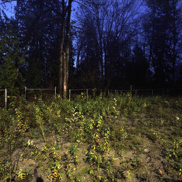 All of the work in the on going series Crepuscule is photographed at night using available ambient light. It is under cover of darkness that I am able to document locations where the natural landscape is illuminated by artificial light from various sources. These locations exist primarily in areas of contained, sparse, or fringe development, where the boundary between the natural landscape and human settlement is fraught with tension.